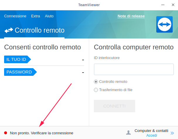 A questo punto riavviando Teamviewer, nel caso sia ancora aperto, potrai notare che funziona regolarmente